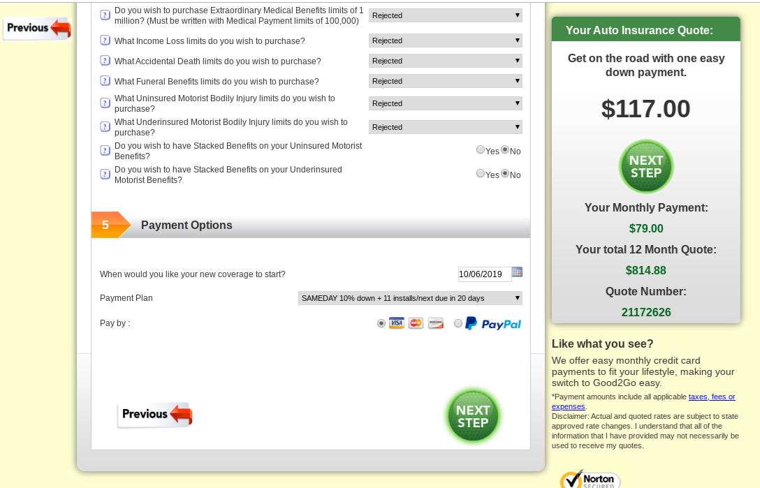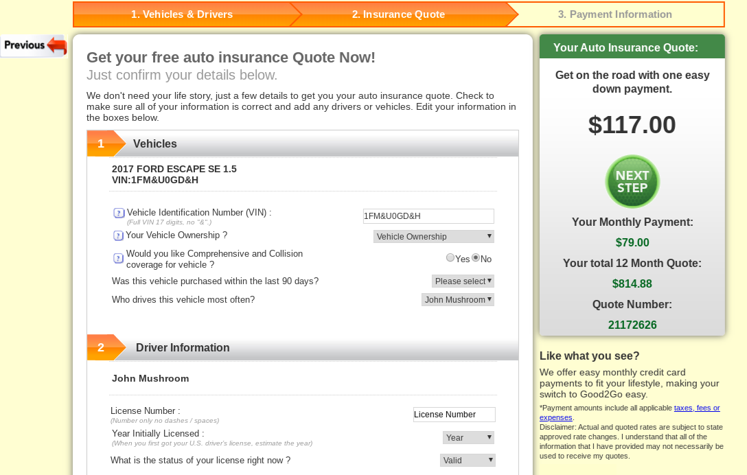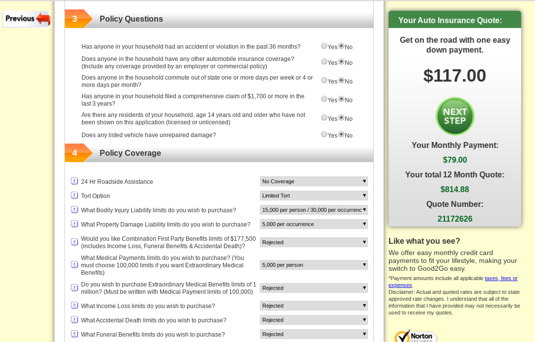 If you’re successful and can find coverage with Good2Go, it’ll pull you to this page.