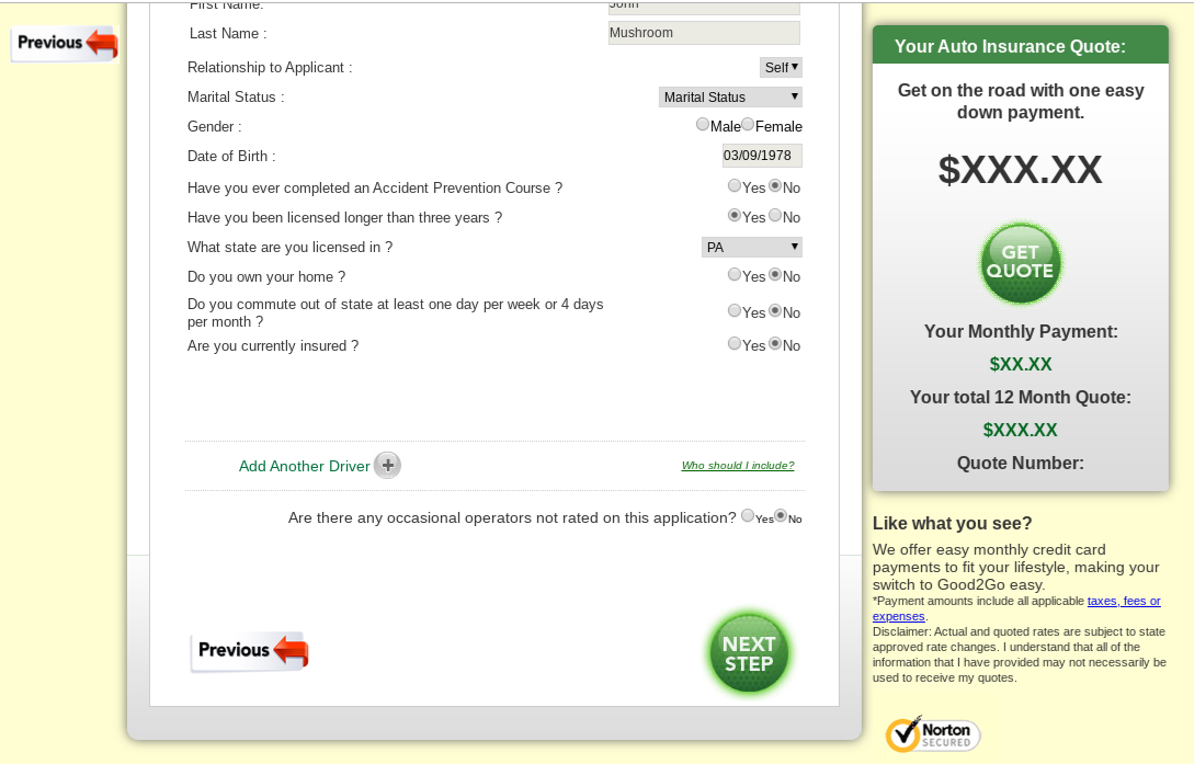 Not very. The quote generator will have you input all the information as if you were using the Good2Go’s quote process. After, it will generate a few companies from which you can get quotes from. If you click the “see my quote” button, it’ll take you to their page.